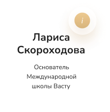 ✓2 модуля курса “Васту для квартир, домов и участков” ✓Промежуточная защита проекта “Васту-кейс от “А” до “Я” для квартиры” ✓Заключительная защита проекта “Васту-кейс от “А” до “Я” для дома или участка” ✓Диплом установленного образца - по окончании курса вы сдаете экзамен и получаете диплом о профессиональной переподготовке ✓Живые эфиры ✓ Обратная связь лично от Ларисы